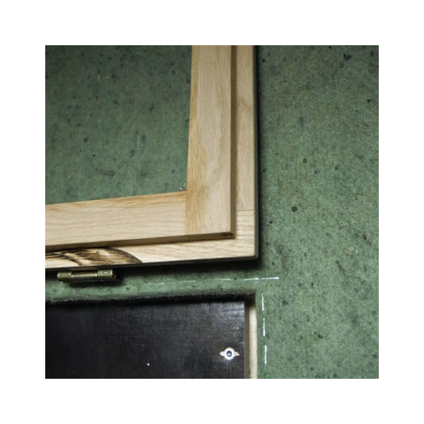 Ein Schiebebrett mit dreiseitiger Auflagemöglichkeit für die optimale Haltung beim Schuss und spezielle Innenfenster aus Hartholz (mit 4 mm Echtglas), ringsherum überpfälzt, runden die Ausstattung ab.