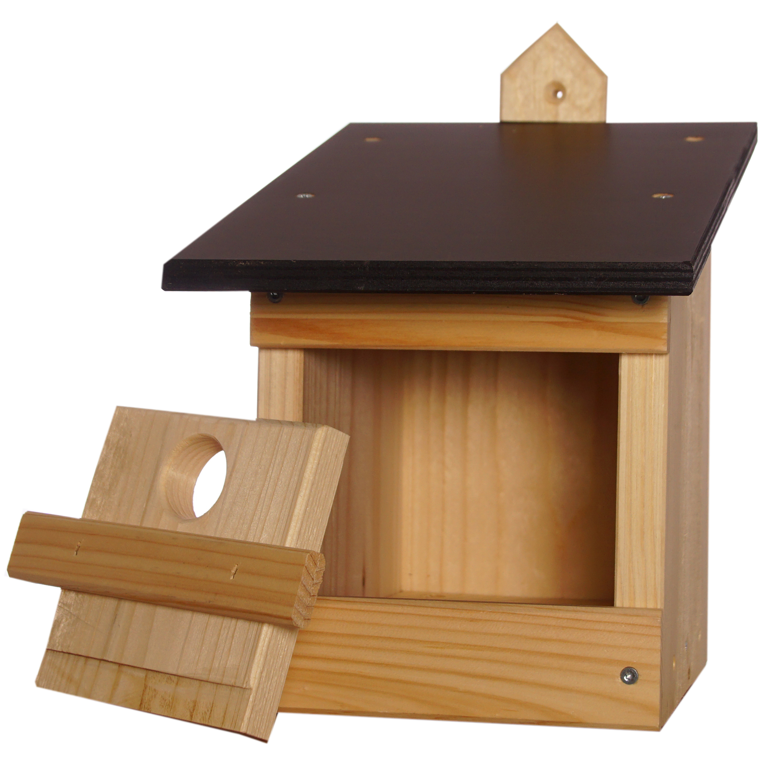 Der Nistkasten aus Fichte ist für Kohlmeisen geeignet.